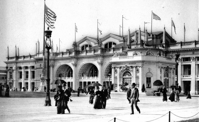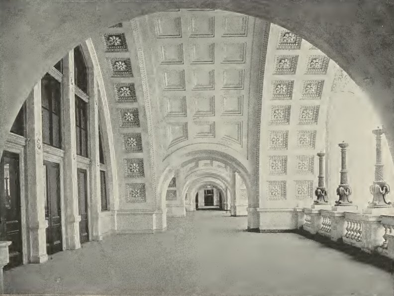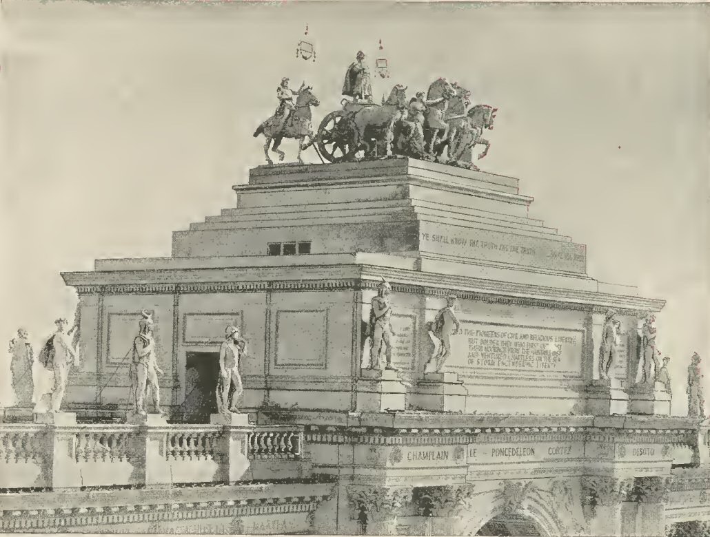 Le bâtiment principal de style Renaissance espagnole en hommage à Christophe Colomb, donnait un aspect cathédrale avec ses hautes flèches et ses dômes sur les extrémités et sa richesse en colonnades.