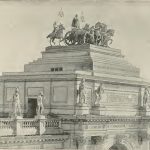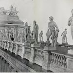 Statue d’un cowboy et son cheval et l’immense statue de la République devant le Péristyle.