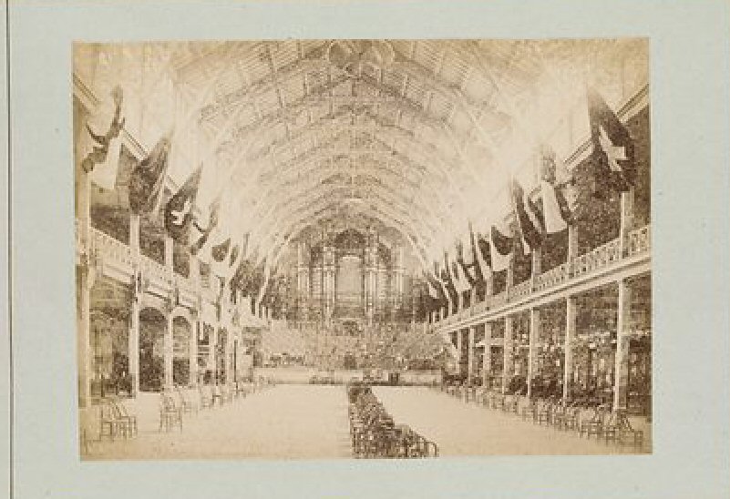 A l’occasion le palais royal des expositions a été construit ainsi qu’un vaste bâtiment en bois qui lui devait-être démoli après l’événement.