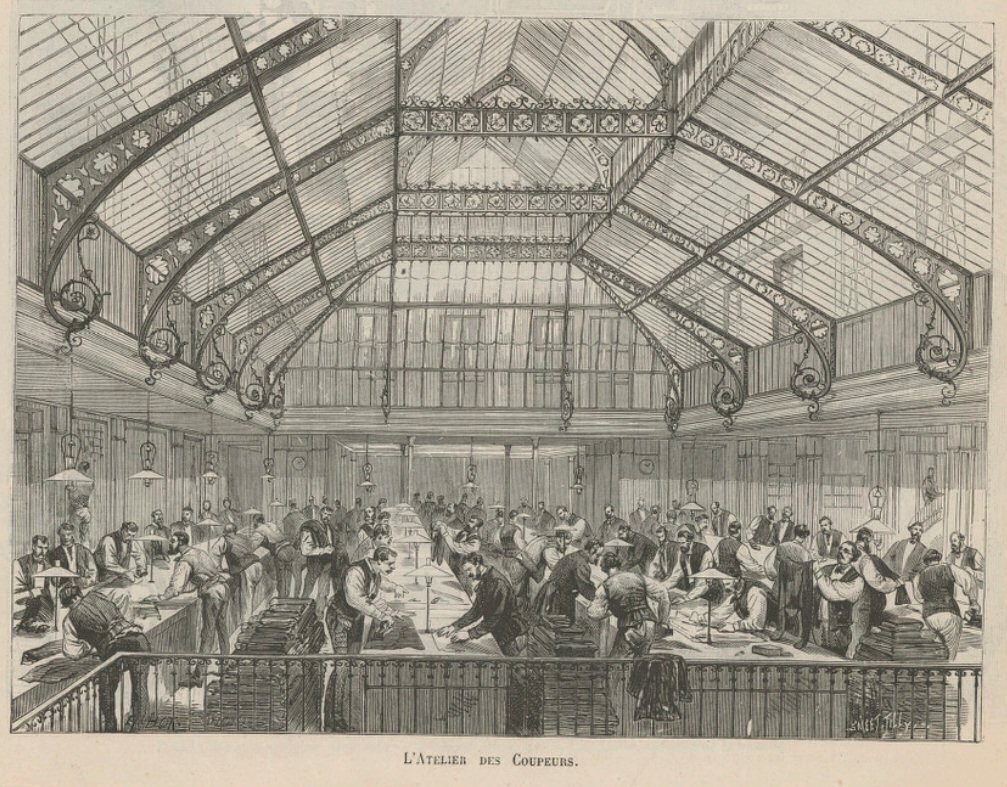 A cette époque la Belle Jardinière employait une cinquantaine de coupeurs, une vingtaine de retoucheurs et 1 200 à 1 500 ouvriers travaillant à domicile.
