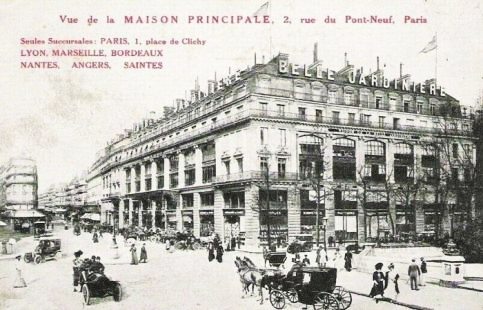 Le 20 avril 1867, l’ouverture de la Belle jardinière, à l’angle du quai de la Mégisserie et du pont Neuf  dans un bâtiment de 3 100 m2.
