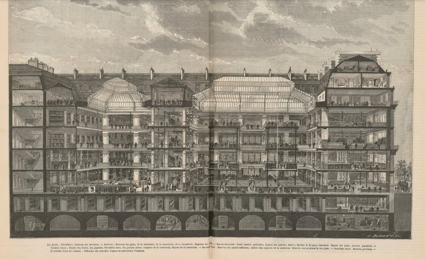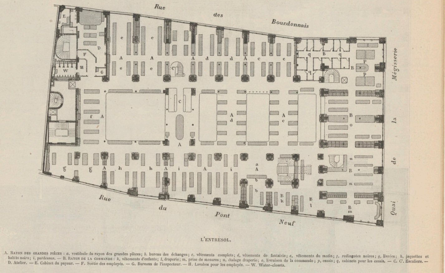 Entre 1840 et 1850, sa boutique de 12 m2 n’ a cesser de s’agrandir avec les étages, les maisons voisines… Le succès aidant, c’était un ilot de 25 maisons que la Belle Jardinière occupait.