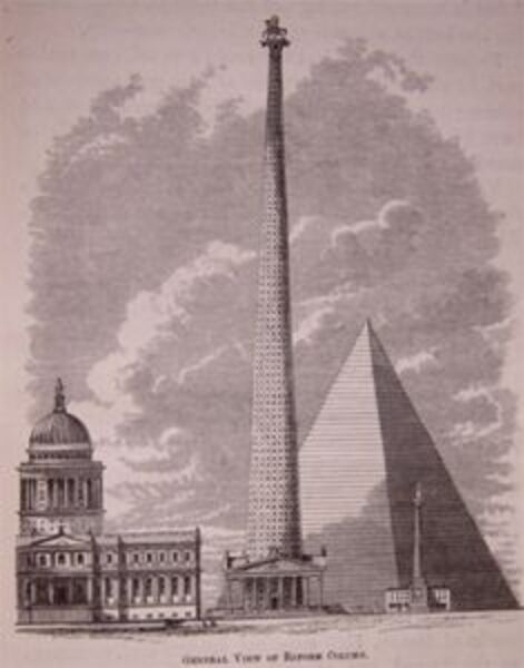 En 1832, le britannique Richard Trevithick (1771-1833) lance une souscription pour accueillir des cotisations pour la construction d’une tour de mille pieds en fonte dont la base serait de 30m de côté et 3,60m au sommet. Elle serait composé de 1 500 plaques de fonte de 3m de côté et 5cm d’épaisseur boulonnées entre elles et d’un poids total de 6 000 tonnes.