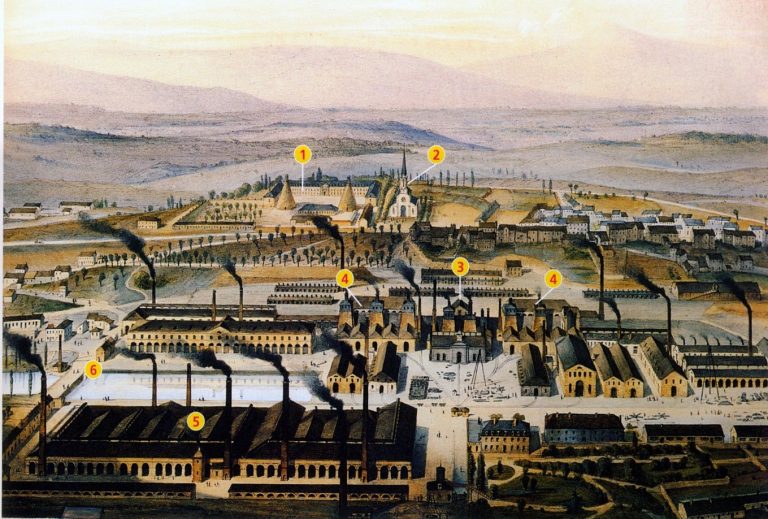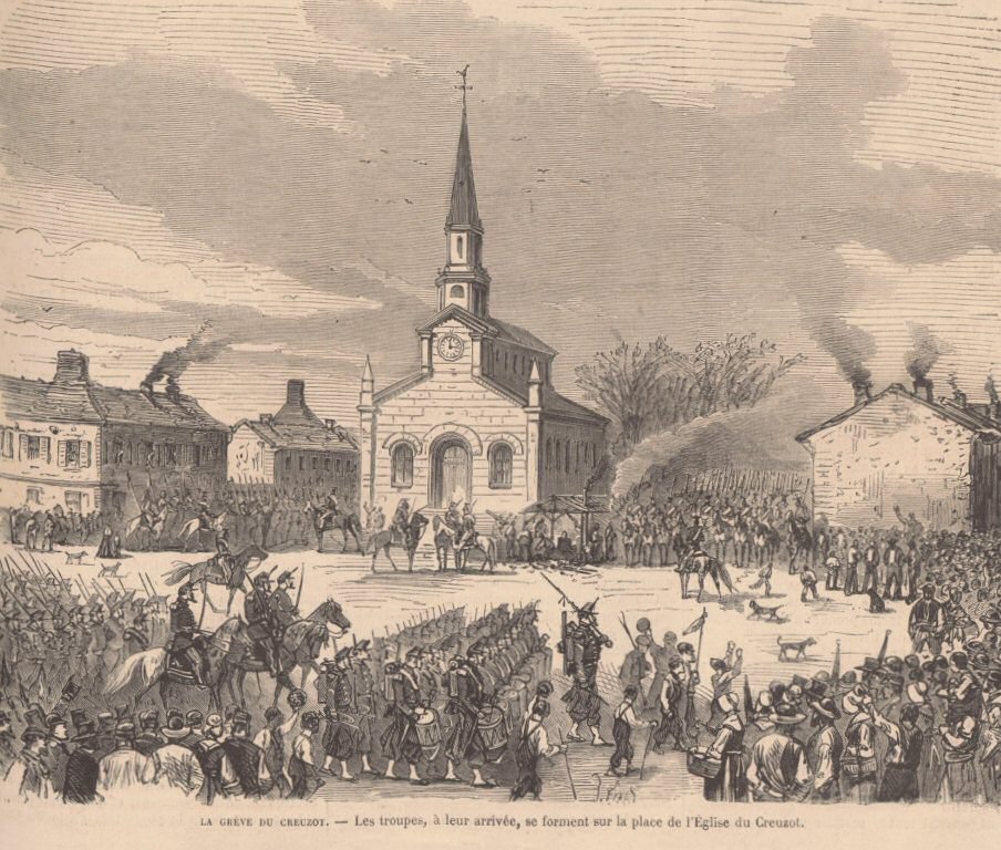 En 1869, Eugène Schneider certes paternaliste, n’accepte pas que l’on s’oppose à lui, des licenciments abusives, une élection d’une gestion ouvrière contestée, les ouvriers se mettent en grève et le préfet fait intervenir 3 000 soldats pour la reprise du travail.