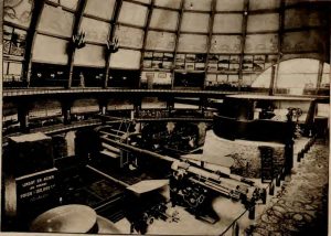 Au sous-sol se trouvaient les locomotives, au rez-de-chaussée dans la coupole le matériel d’artillerie et dans le campanile une exposition de cartes, plans et photographie.