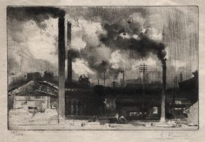 C’est la fumée du Creusot. Cent cheminées géantes vomissent dans l’air des serpents de fumée noire, d’autres crachent de la vapeur blanche. Tout cela couvre