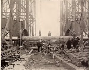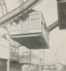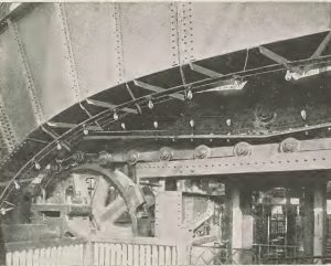 Deux tours en acier de 45 mètres de haut maintenaient la roue reliée à un essieu de 71 tonnes de 80 centimètres m de diamètre pour une longueur de 14 mètres.