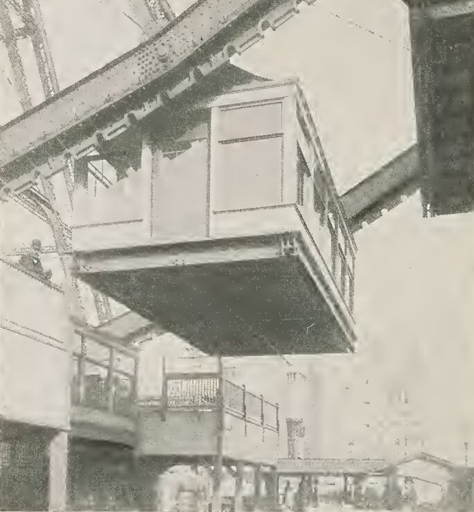 D’un diamètre de 76 mètres sur 9 mètres de large. Elle pouvait transporter à 80 mètres du sol  1 500 personnes dans 36 wagons de chemin de fer qui faisaient office de cabines.