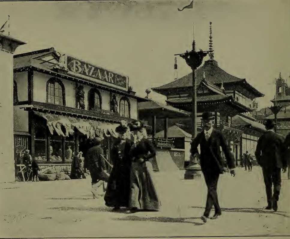 Dans le parc, 50 nations étaient présentes. On y trouvait des théâtres, un village d’indiens, de Laponie, de chinois, d’allemands, de javanais, de turcs, d’irlandais, des campements militaire, de bédouins, des palais persan, algériens, tunisiens,  une ferme d’autruches, le temple de Luxor, un ballon captif sans oublier les bazars, la restauration….