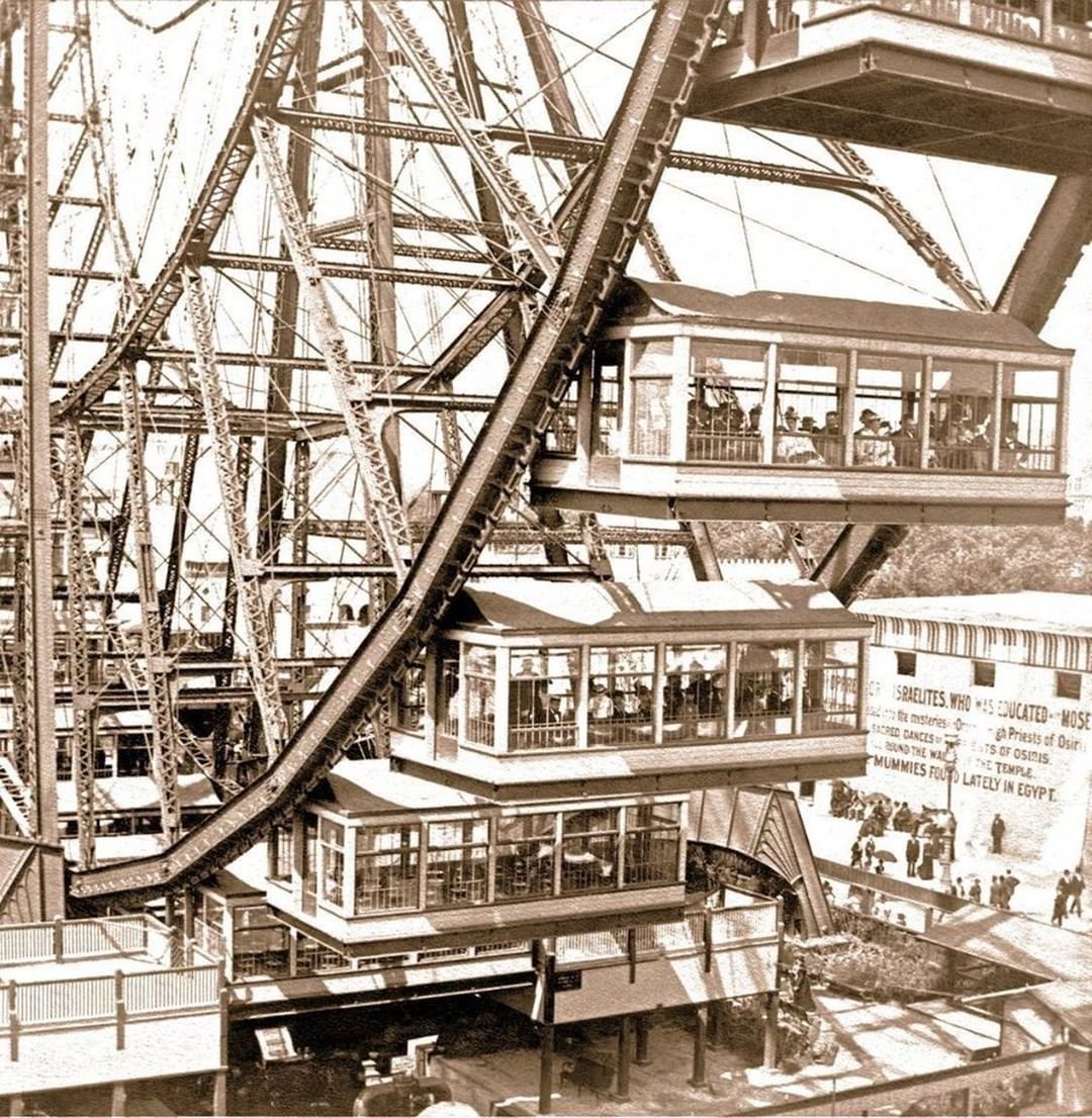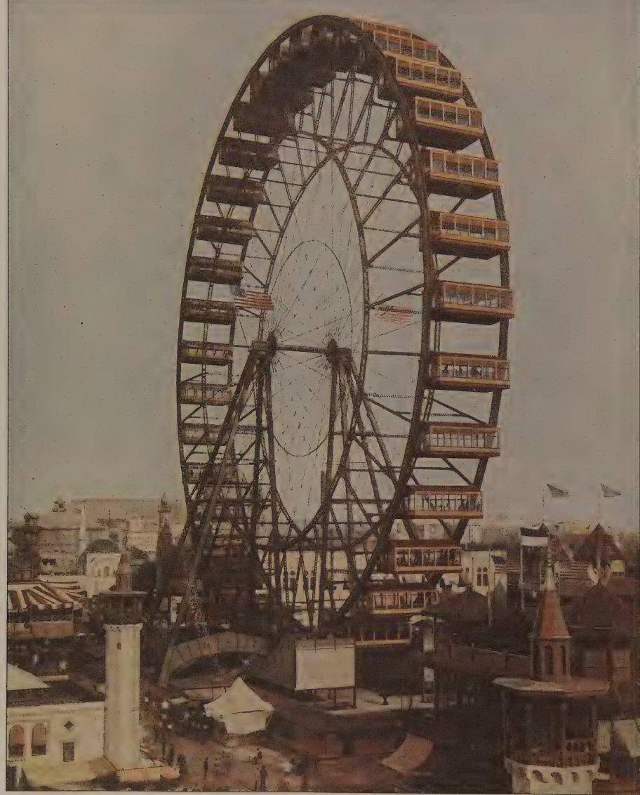 La grande roue de George W. Ferris était l’attraction phare, elle donnait une vue unique sur le parc des expositions, le lac Michigan et bien sûr la ville de Chicago.