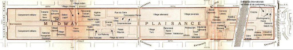 Comme chaque nouvelle exposition universelle  apportait une nouveauté, à Chicago est né « Midway Plaisance », le premier concept de parc d’attraction qui inspira plus tard Walt Disney.